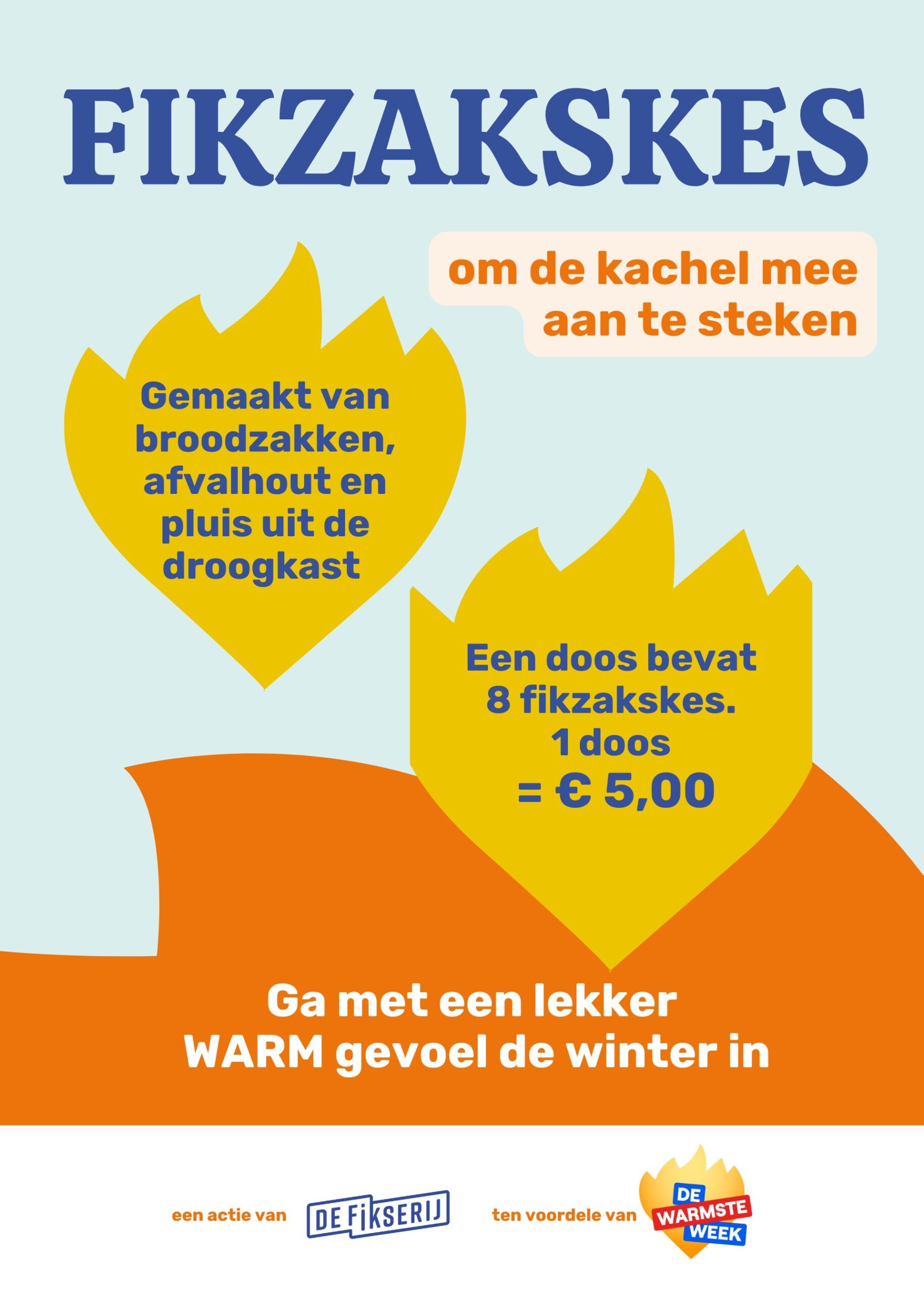 - Duurzaamheid: De Fikzakskes zijn gemaakt uit gerecupereerde broodzakken, afvalhout & pluisjes uit de droogkast. Een duurzame manier om je vuur te starten.